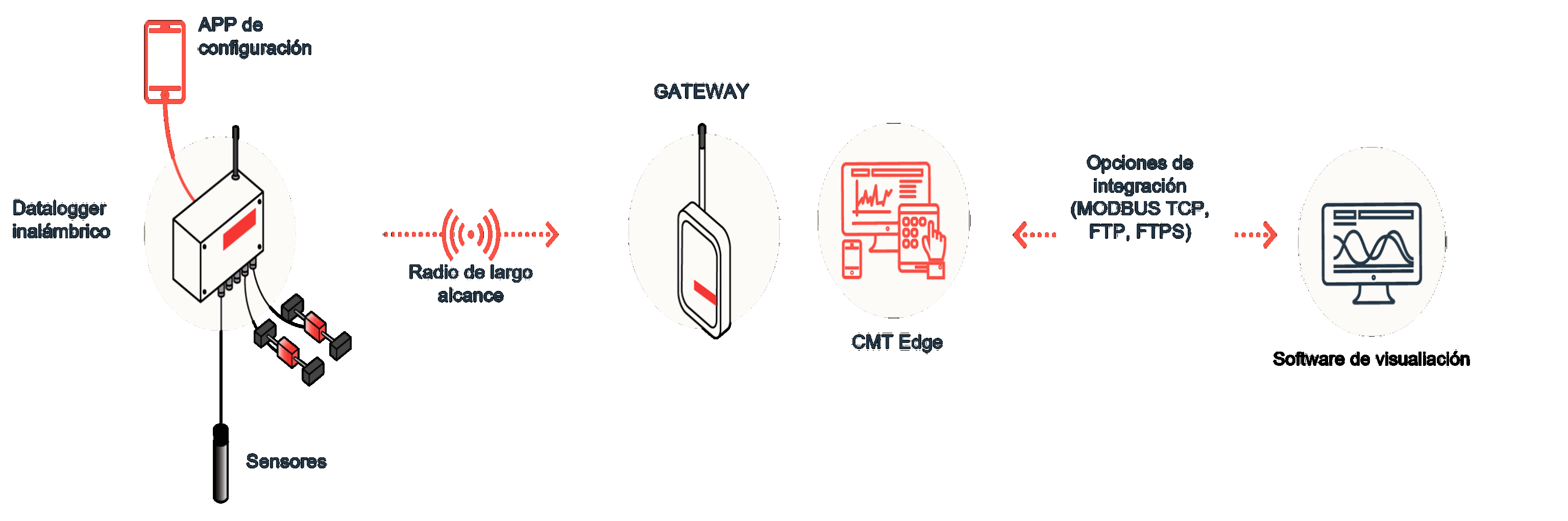 Los Dataloggers transmiten la información en tiempo real mediante señales de radio de largo alcance a dispositivos de gestión de datos (Gateway).